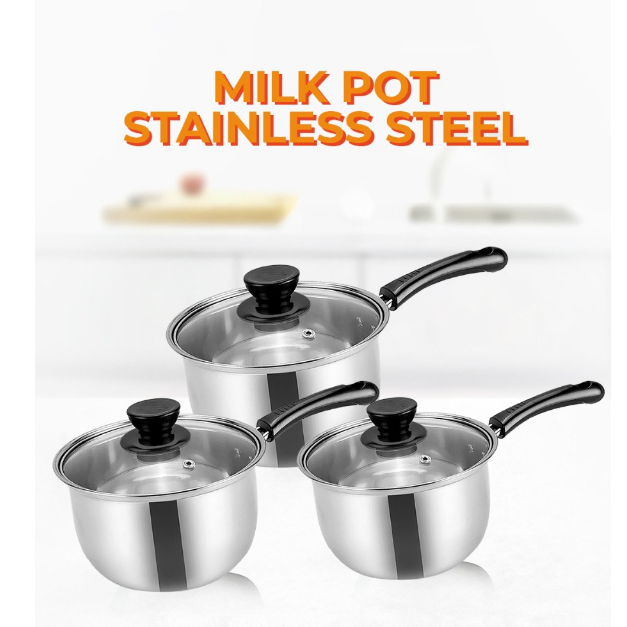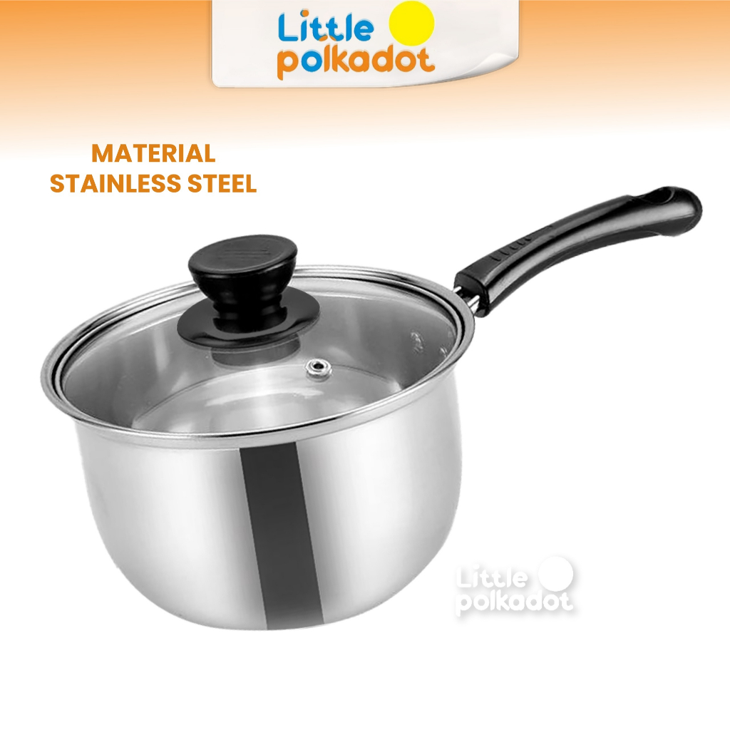 Littlepolkadot Panci Mie Stainless +Tutup Kaca 16cm 18cm 20cm Set PANCI SUSU MILK POT STAINLESS TUTUP KACA Panci Susu MI