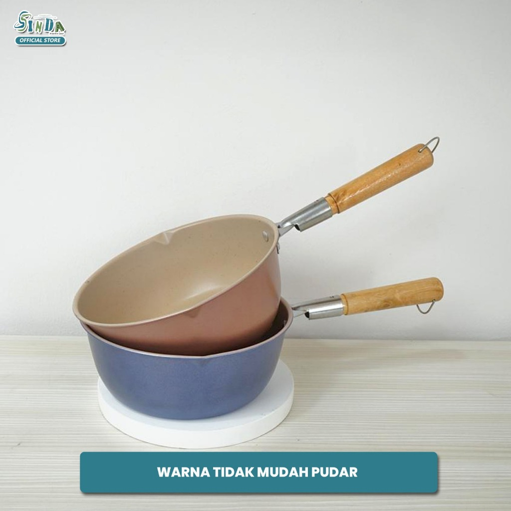Sinda Panci Susu Anti lengket Panci Marble Penggorengan Masak Mie 18cm & 20cm Gagang Kayu