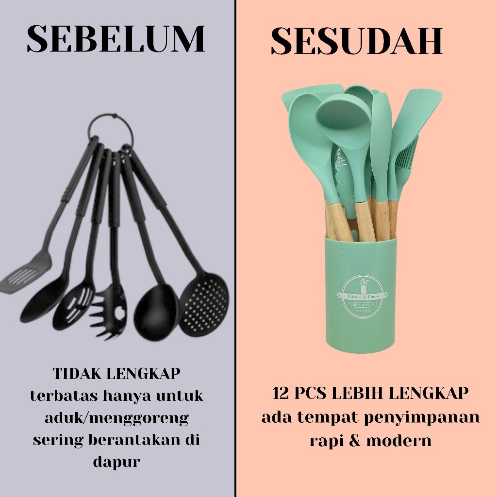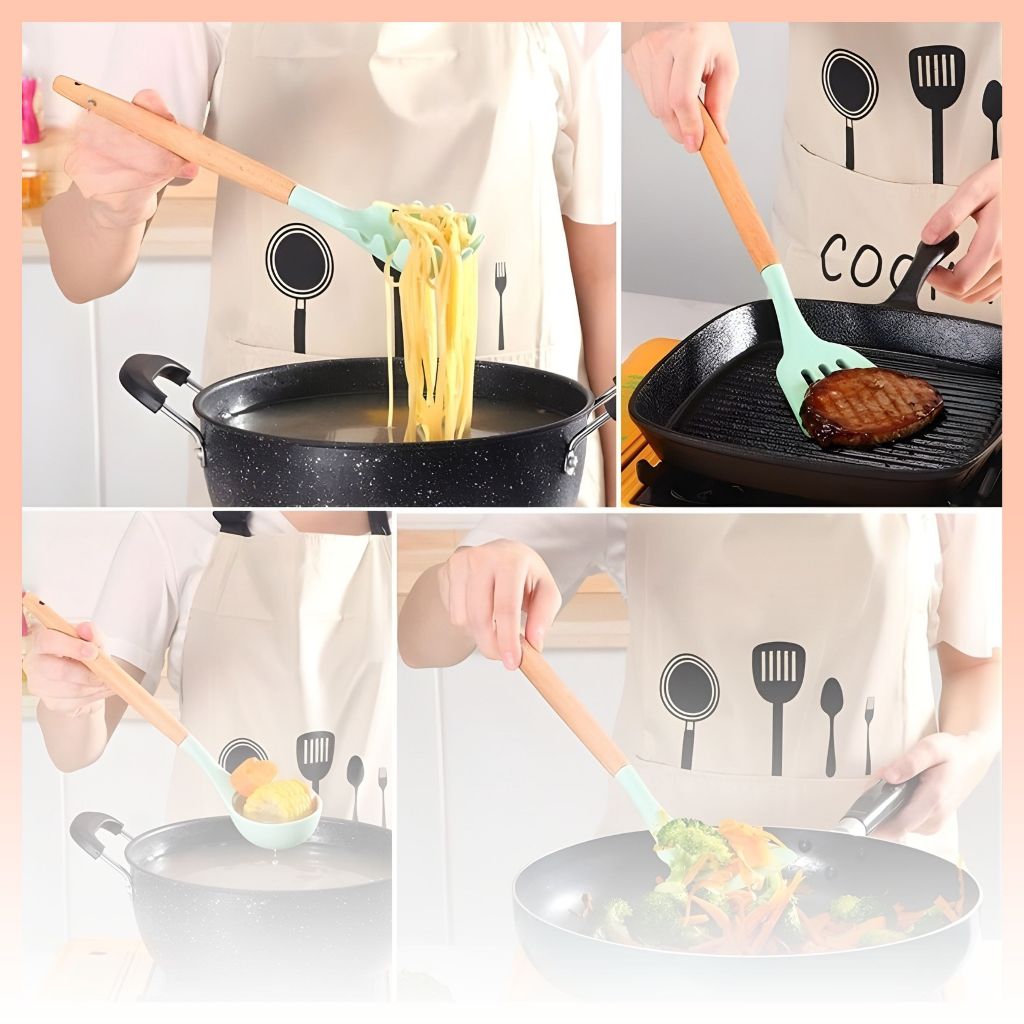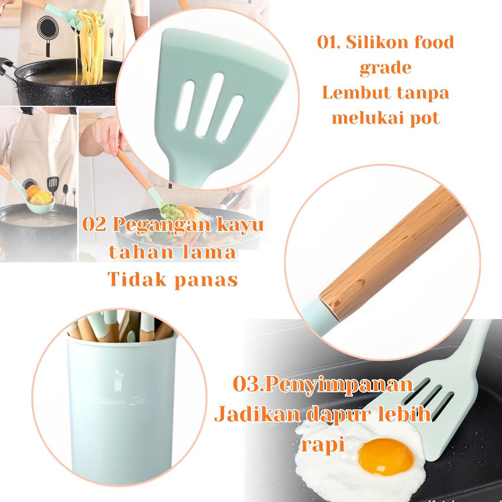 PAJADA Spatula Silikon 12in1 Sepatula Peralatan Dapur Masak Sutil Cooking Utensil Kitchen Set Silicone