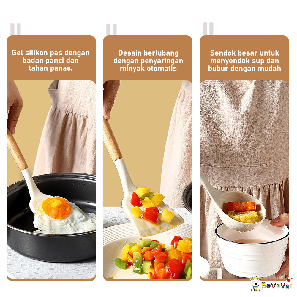 BEVAVAR Alat Masak Silicone Cooking Utensil BPA Free Spatula Silicone Food Grade 3PCS/Set