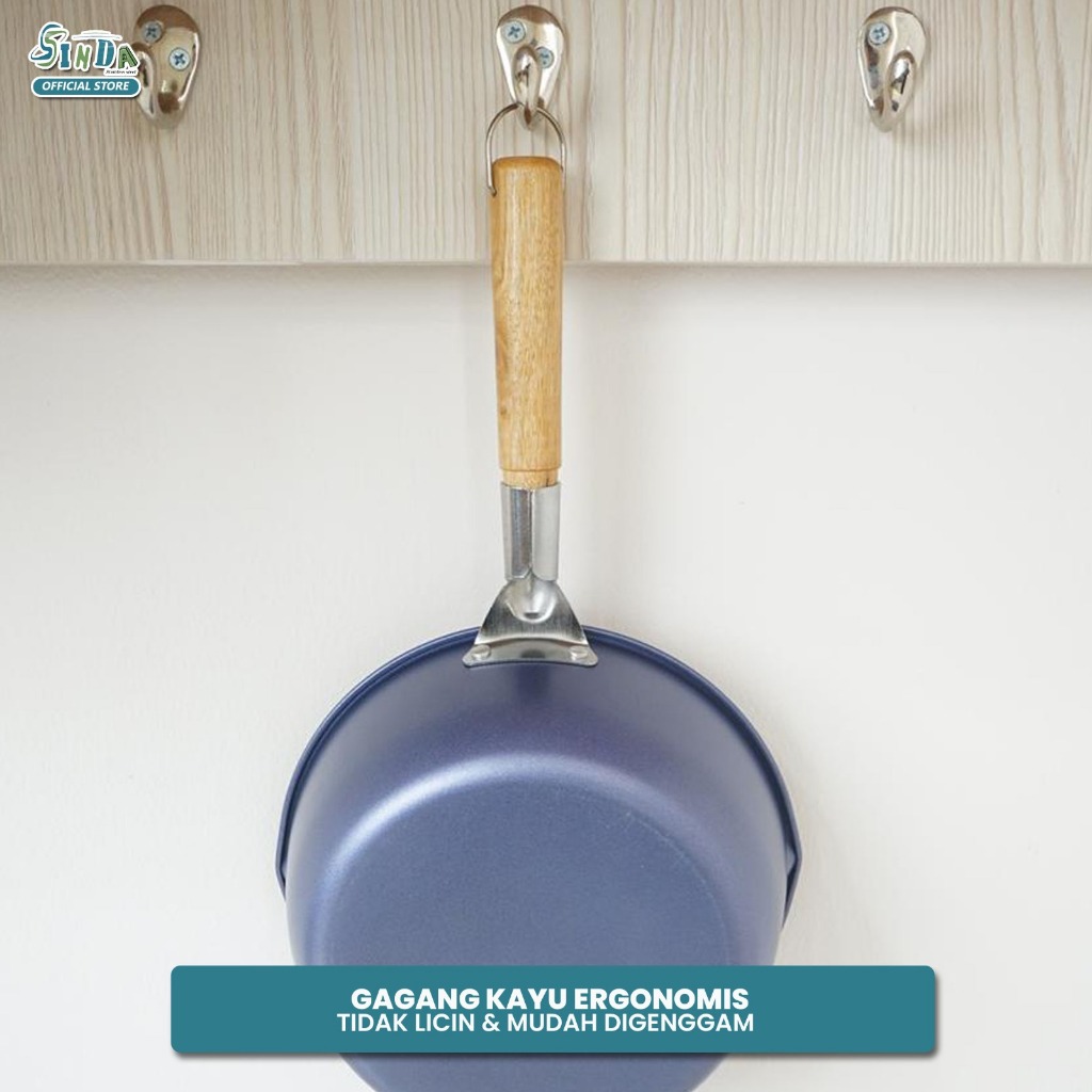 Sinda Panci Susu Anti lengket Panci Marble Penggorengan Masak Mie 18cm & 20cm Gagang Kayu