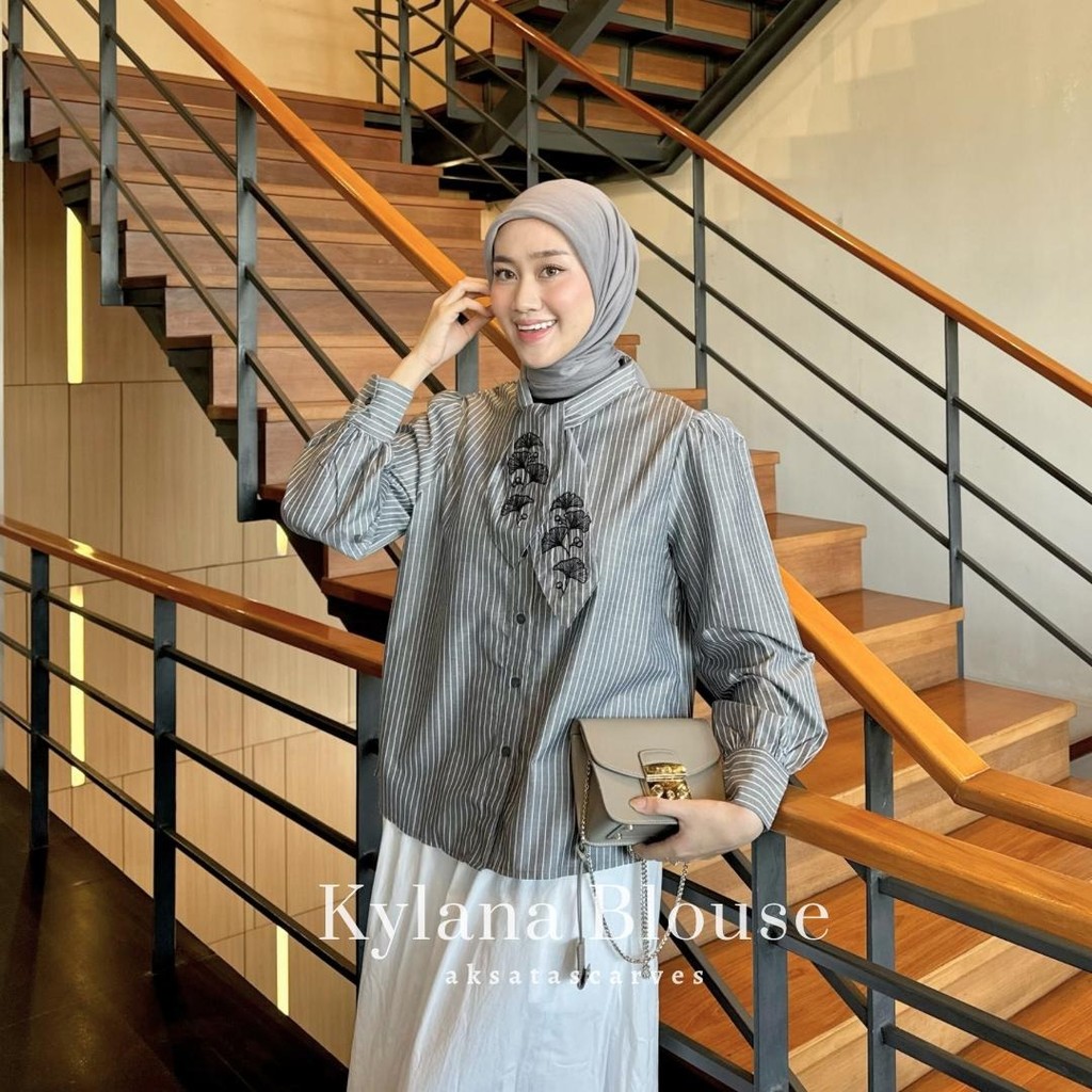 Aksatascarves - Kylana Blouse Elegan Katun Stripe