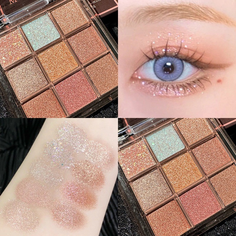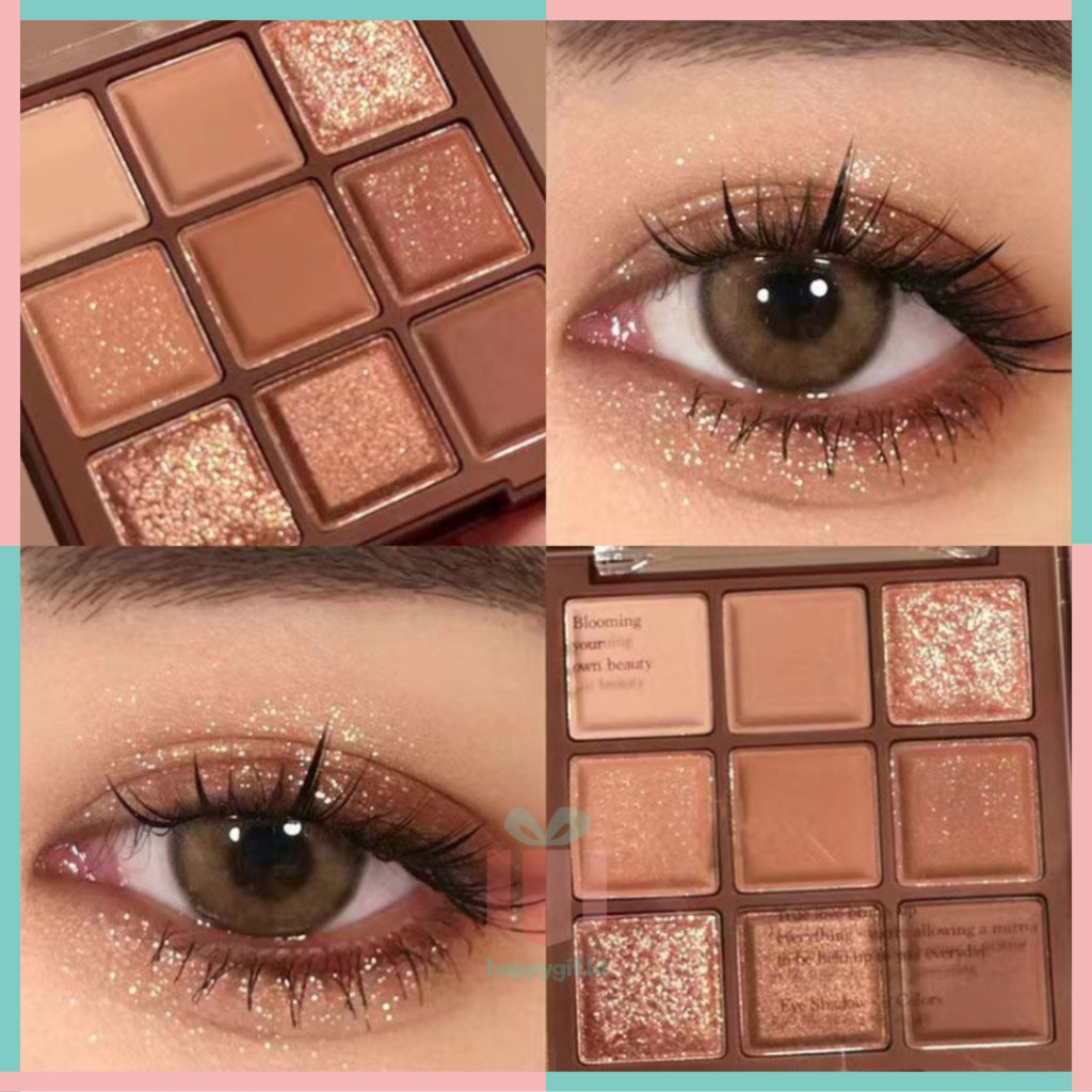 Eyeshadow Palette Mugeleen 9 Warna Coklat Matte Glitter Pigmented Bpom Xx004