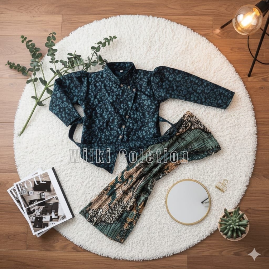 Setelan Kebaya Anak Janggan Modern Embos Jaguard Premium Set Rok Plisket Usia 4 - 14 Tahun Tk Sd Smp