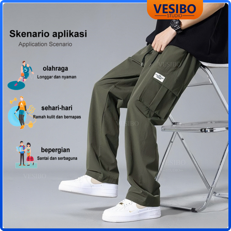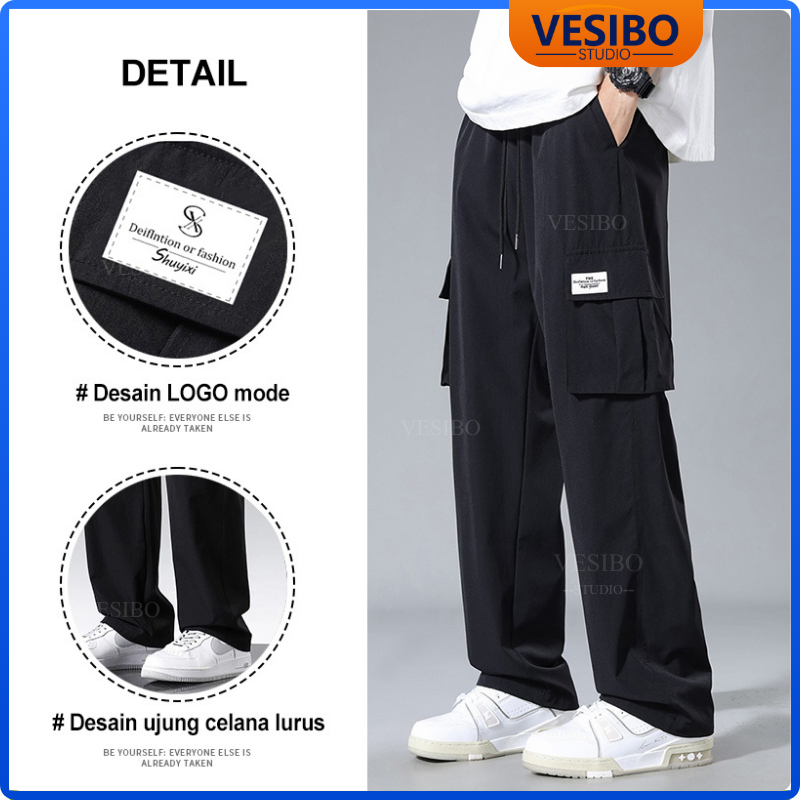 Celana Cargo Pria Longgar Pants Fashion Korean Style Designer New Styles Cargo Pants Hitam