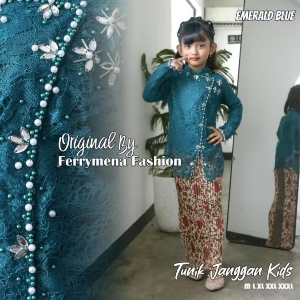 Kebaya kartini anak perempuan / Set kebaya brokat anak janggan payet / Baju kondangan anak umur 4-12 tahun / Kebaya anak tanggung buat wisuda dan seragaman / Rok plisket anak