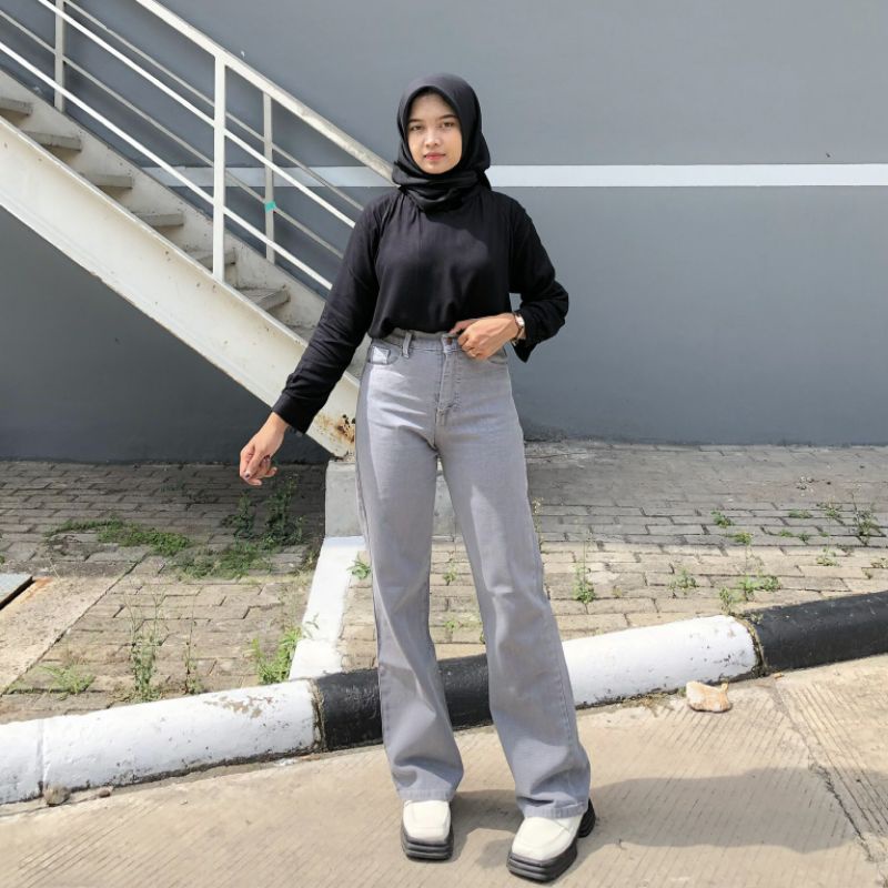 Awsme - Loose Abu Grey Jeans / Celana Highwaist Loose Jeans / Hw Loose Jeans Wanita Korean / Haigh Waist Jeans Polos Bas