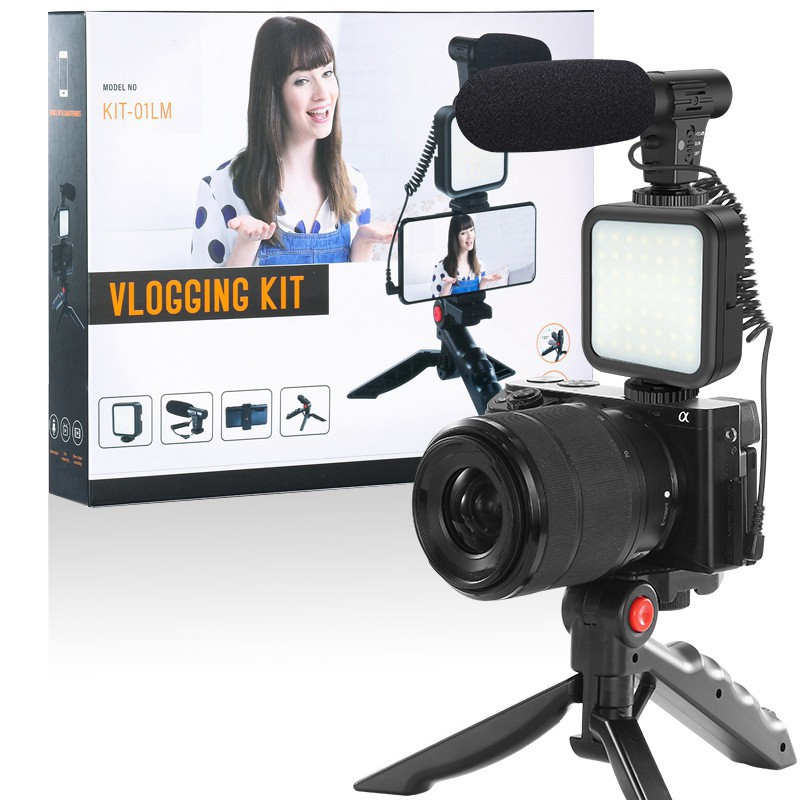 Stabilizer Lampu Vlogger Set Stabilizer Gimbal HP Kamera All in One LED Tripod Microphone Kit Phone Holder
