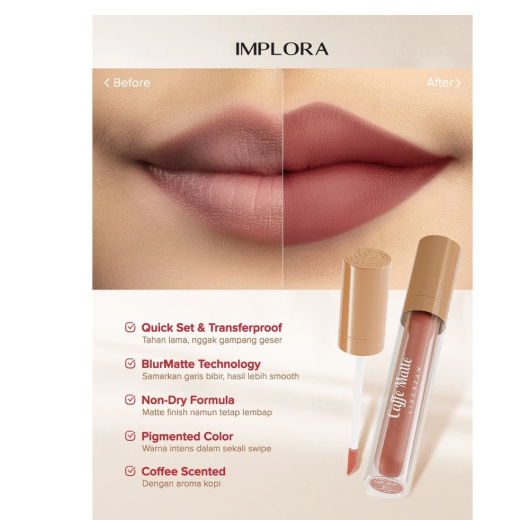 IMPLORA Caffe Matte Lip Cream | Cafe Krim Bibir