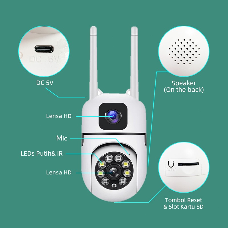 Franwell Cctv Wifi Dual Lens Outdoor 1080p Night Vision Audio 2 Arah Pantau Lewat Hp Tahan Hujan
