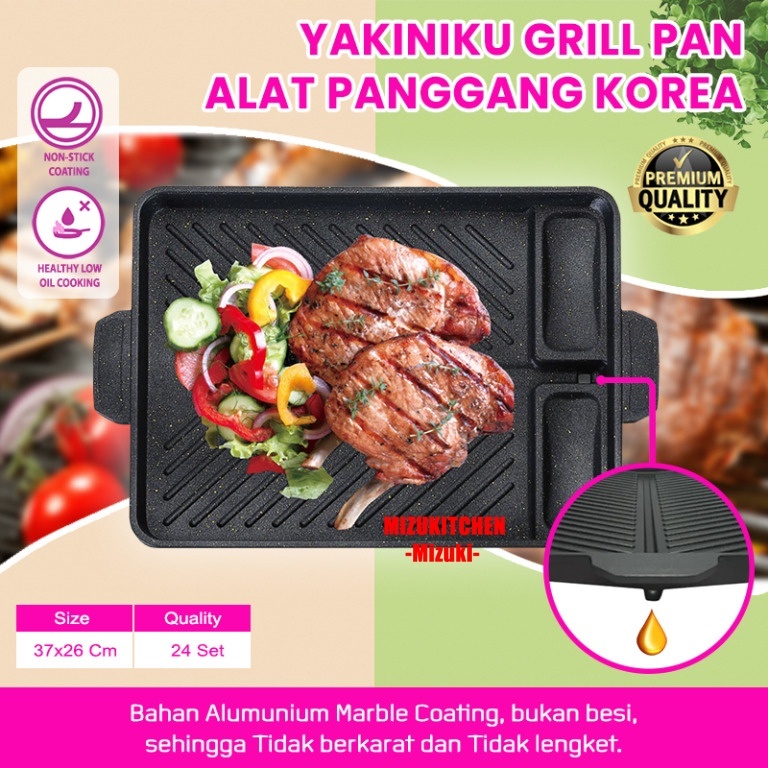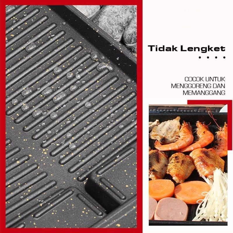 QME Korean Yakiniku Grill Pan Marble Coating Alat Panggang Anti Lengket Panci Pemanggang sate daging barbeque BBQ Panci