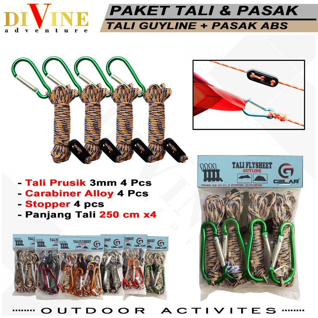 paketan pasak tali guyline paket 6 pasak ABS dan 4 tali flysheet tali tenda pasak tenda set serbaguna alat Camping