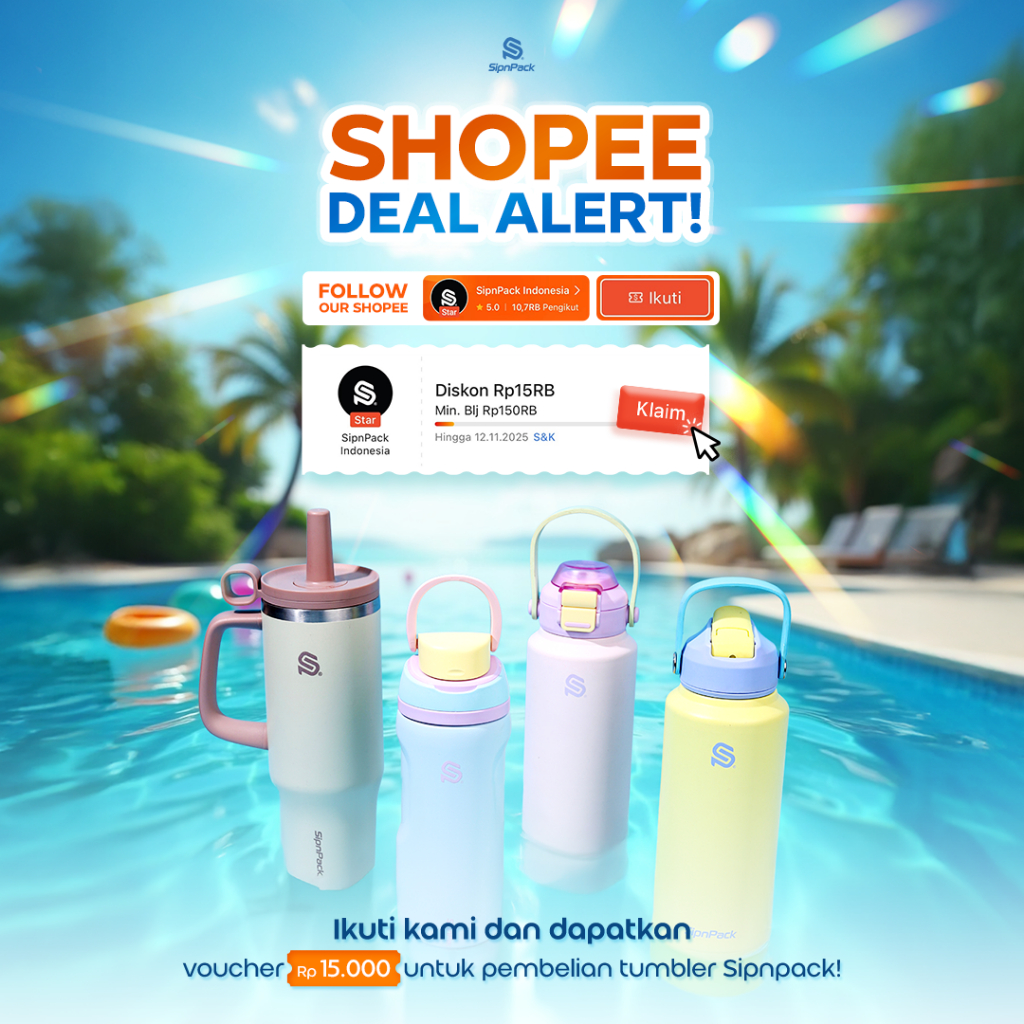 SipnPack ClassicSip Tumbler Stainless 1 Liter Botol Minum 1 Liter Tahan Panas / Dingin Portable Stainless Steel Tumblr