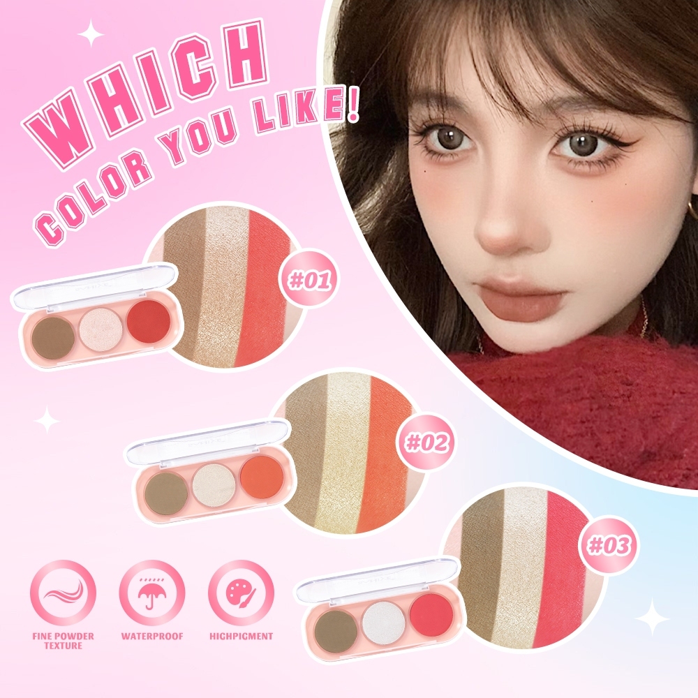Eyeshadow Palette Saniye Multi Fungsi Blush On Glitter Highlighter 3 Warna E0358