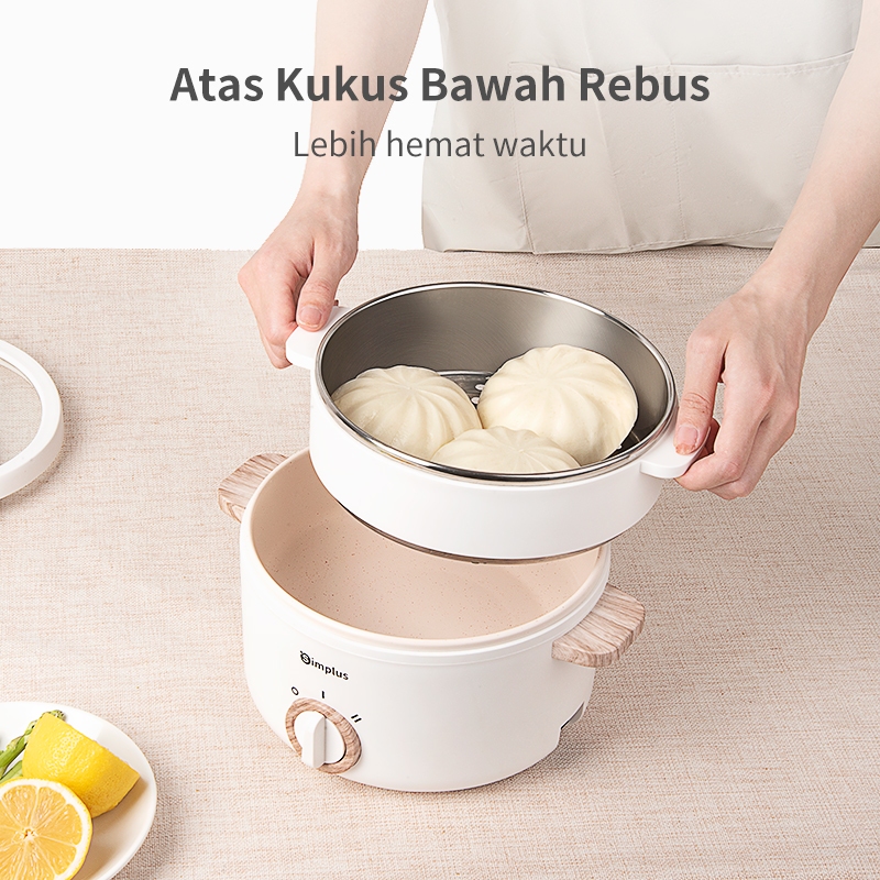 Panci Listrik Kapasitas 1,5L Serbaguna Anti Lengket Dengan Kukusan 2 Mode Panas Simplus