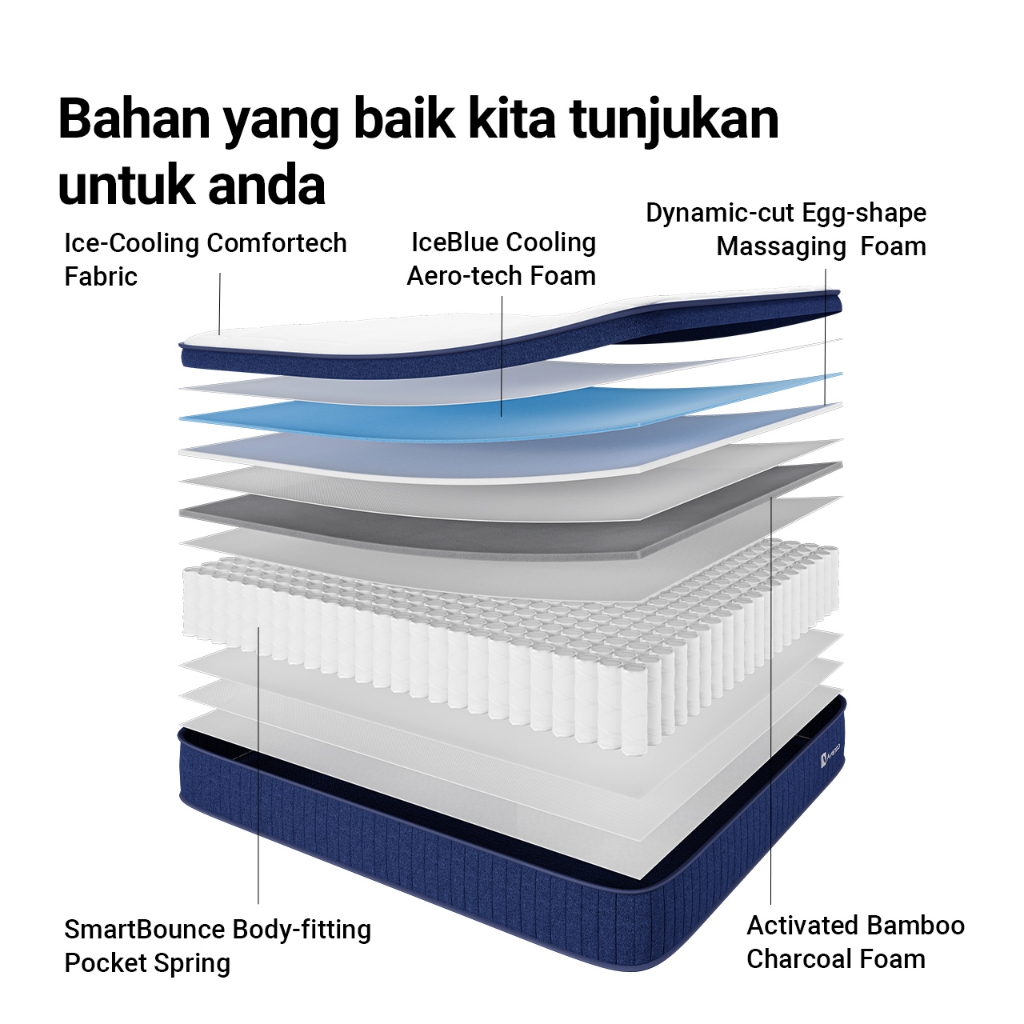 Kasur Springbed Avenco Dreamcube Iceblue Triple Cooling Pegas Pocket 30Cm Free Bantal