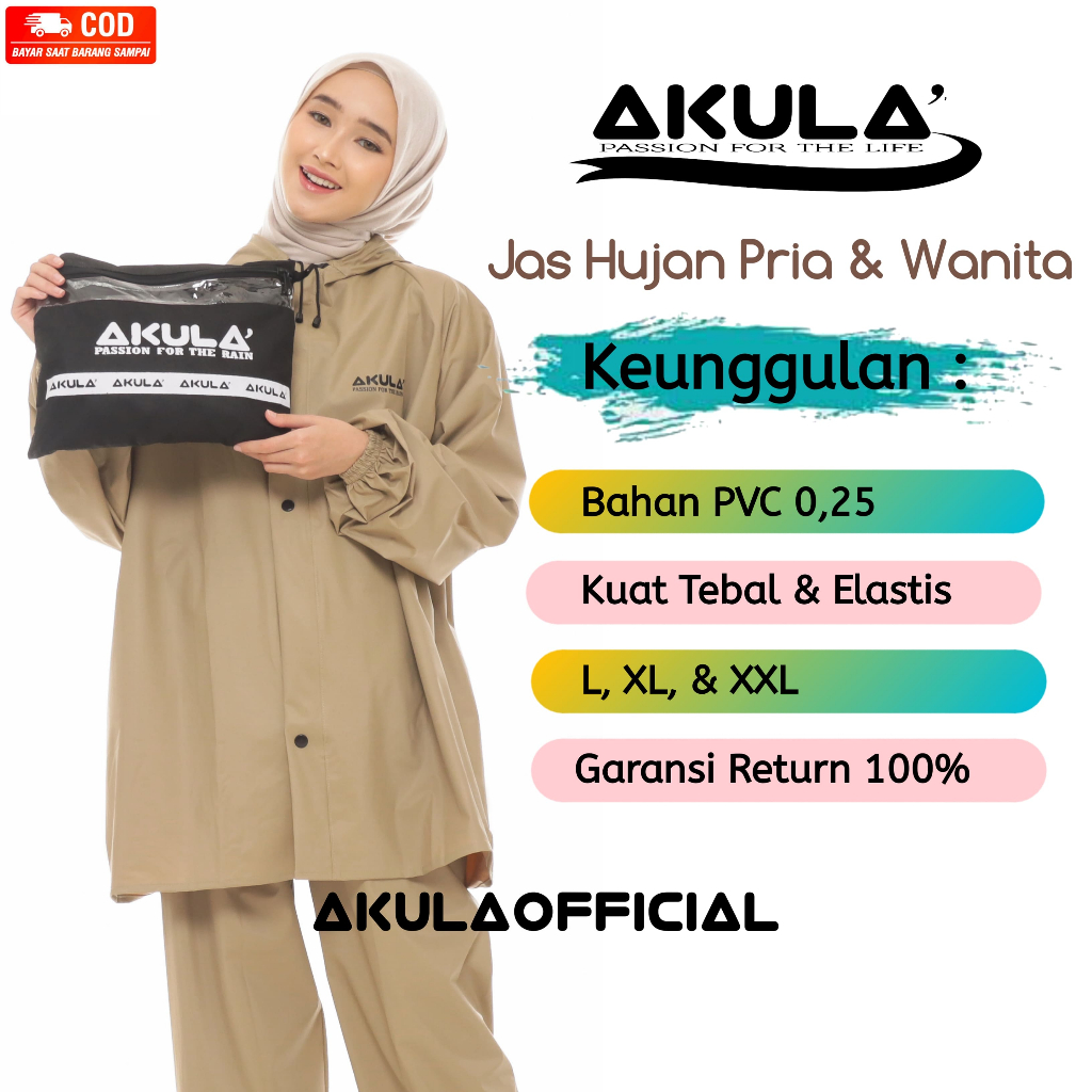 JAS HUJAN, RAINCOAT Pria Wanita Terbaik By AKULA Anti Rembes HIJAU ARMY