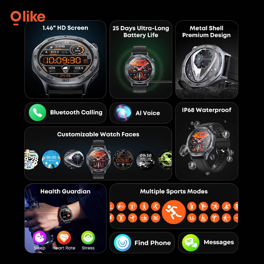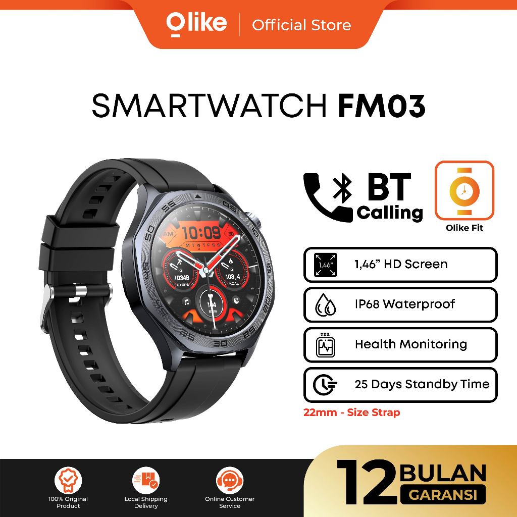 OLIKE Smartwatch FM03 Health & Sport Monitoring Bluetooth Call AI Voice IP68 100+ Mode Olahraga
