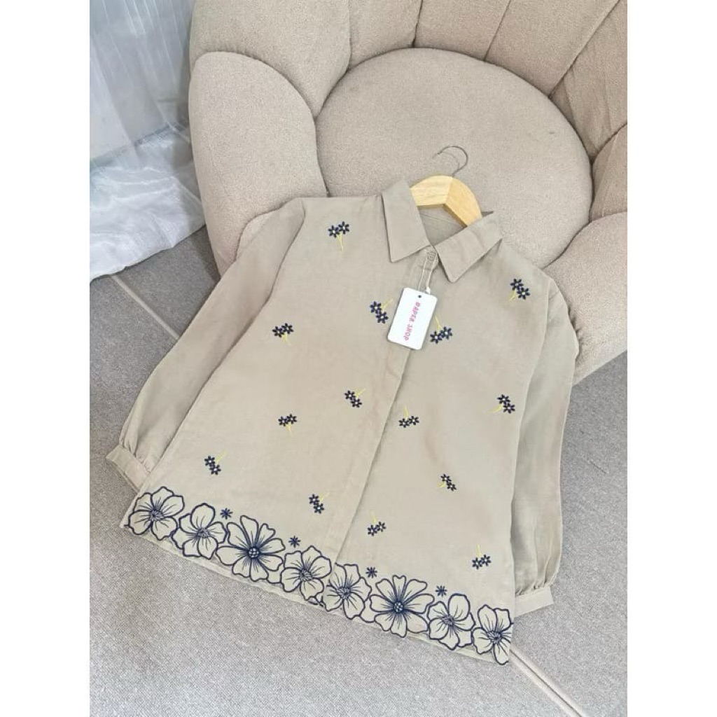 Berri Top Shirt Kemeja Wanita Bordir Premium Linen Rami