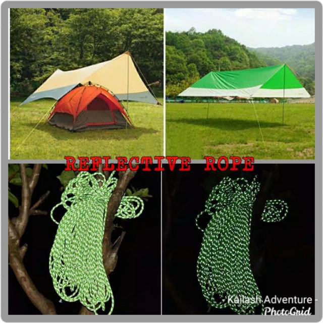 Paket Tali Paracord Reflektif Dengan Stopper Guyline Untuk Pengikat Tenda dan Flysheet - Isi 4pcs