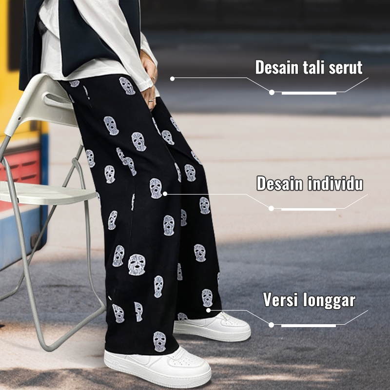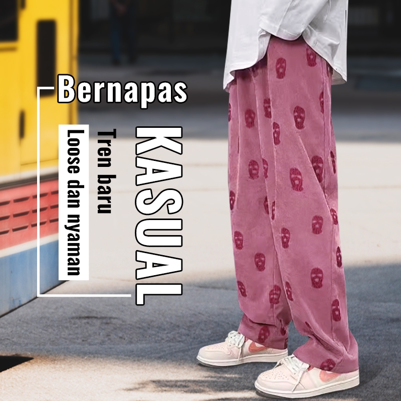 Celana Corduroy Celana Baggy gombrong Celana y2k Celana longgar Nyaman Santai Gambar tengkorak