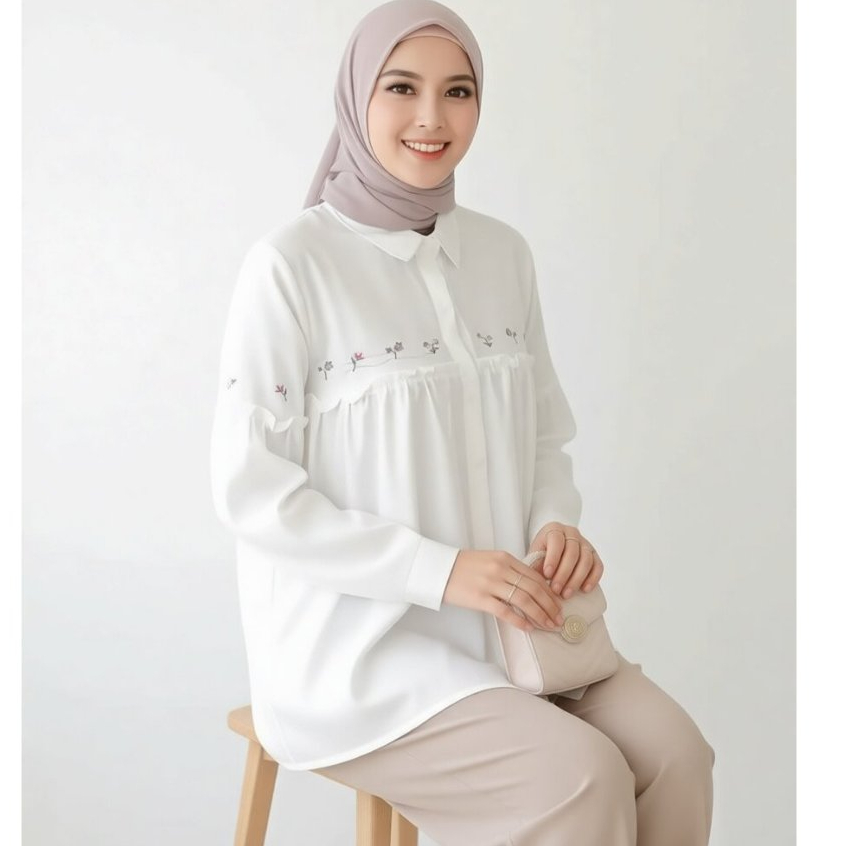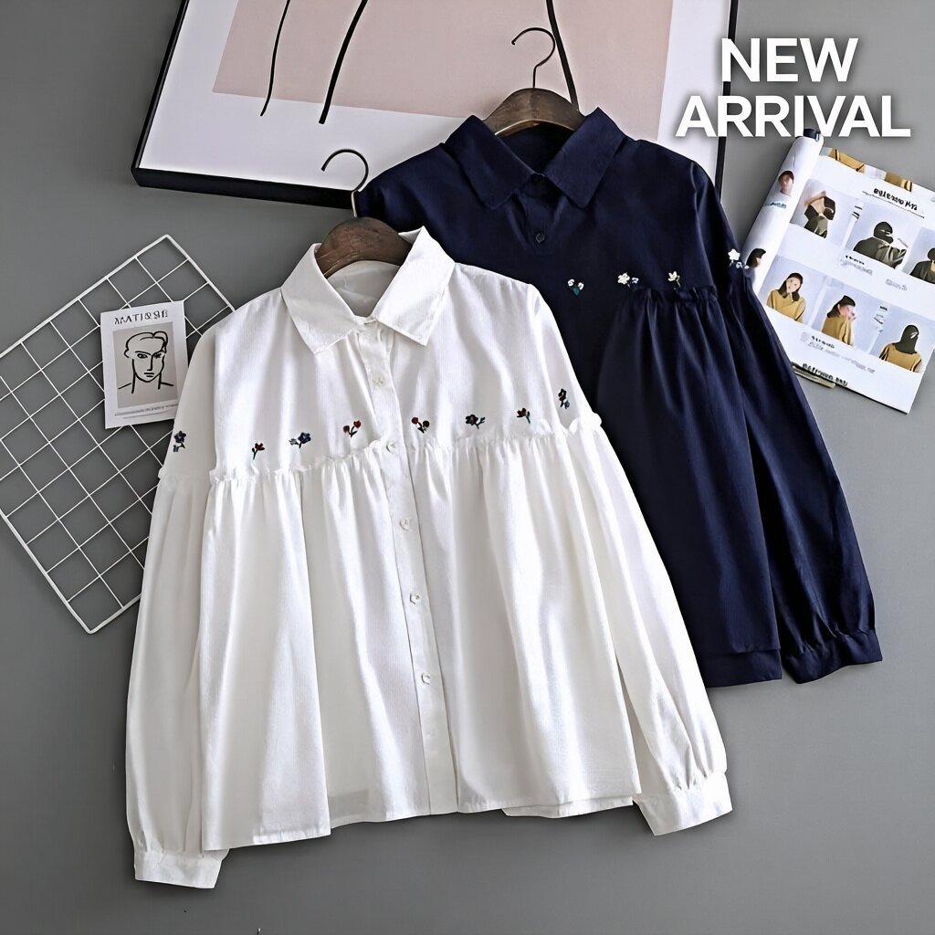 Atasan Kemeja Wanita Bordir Bunga-Bunga S-Xxl