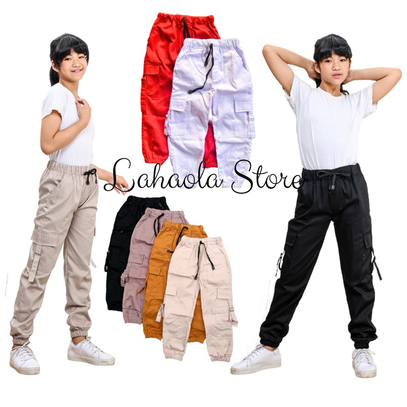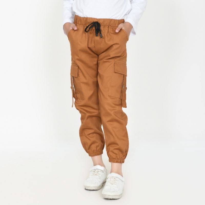 Celana panjang cargo joger anak usia 1-13 tahun unisex katun drill lembut