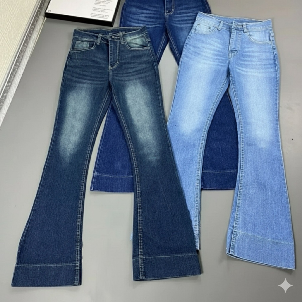Celana Jeans Cutbray Highwaist Stretch Wanita Loose Kekinian Retro Korea Lipat Bawah