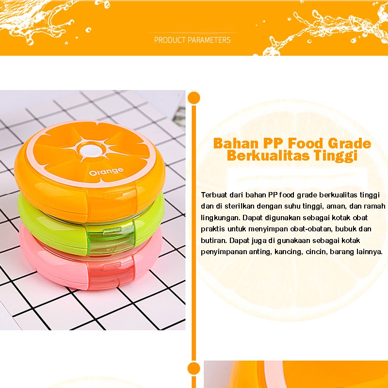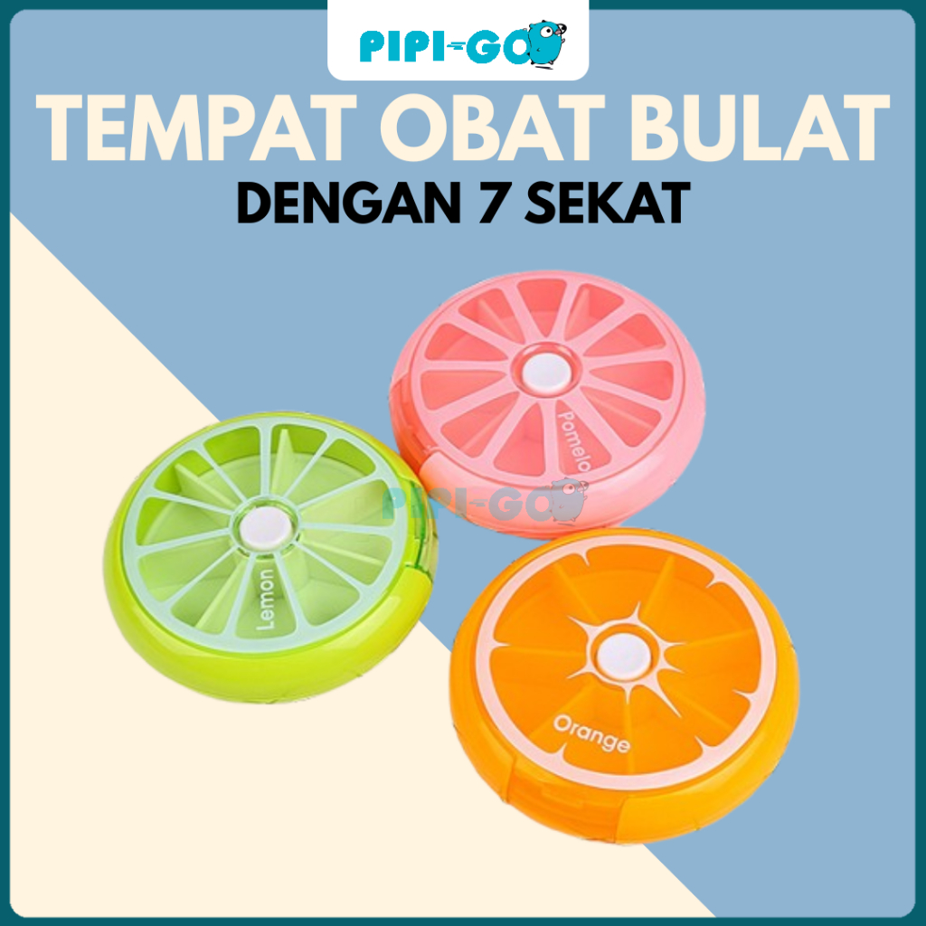 Kotak Obat Ppg Bulat Tujuh Sekat Motif Buah Vitamin Box Putar Otomatis Praktis Untuk Rumah