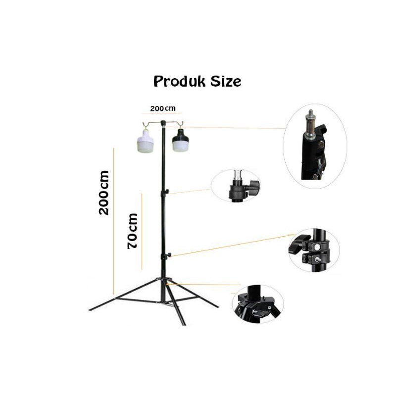 Tiang gantungan lampu infus dan kamera Tripod Portable 3 section 200cm untuk Lampu Camping/Tiang Infus Portable/Tiang Ho