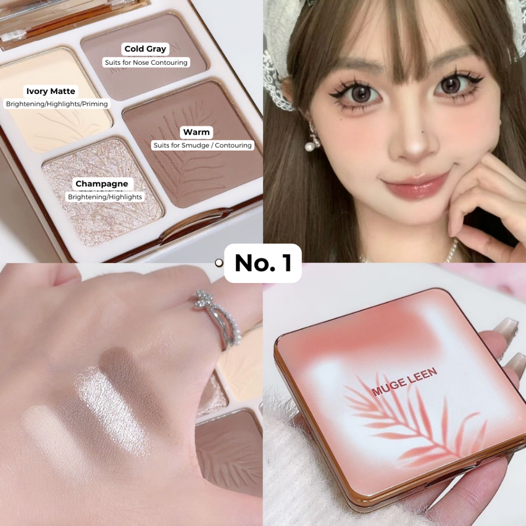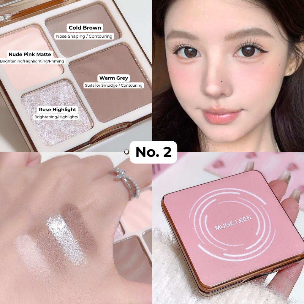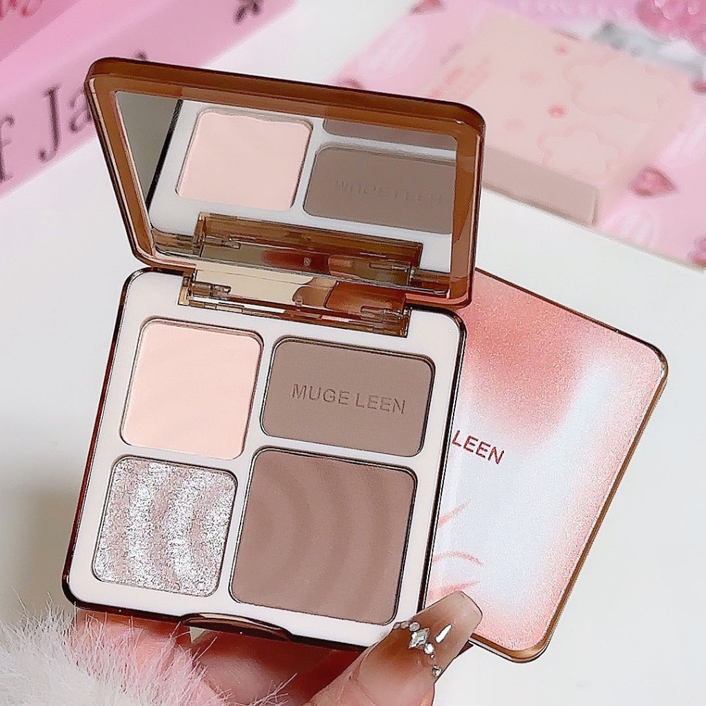 Eyeshadow Palette Muge Leen Sakura Petal 4 In 1 Highlighter Blusher Contour Powder Pink