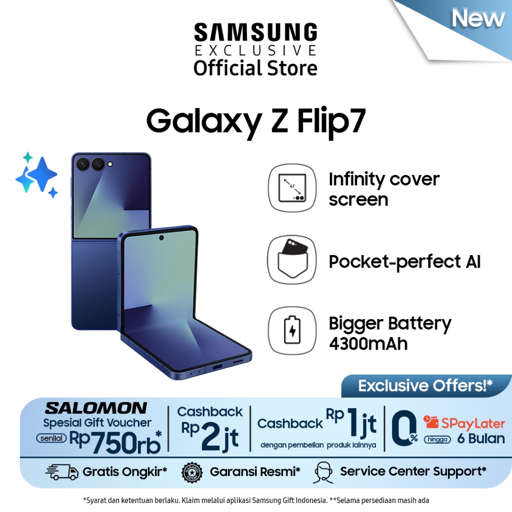 Samsung Galaxy Z Flip7 12/512GB - Blue Shadow Smartphone AI Hp Lipat Kamera 50MP 4300 mAh