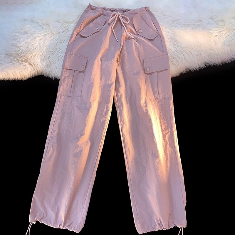 Cargo Pants Wanita Serut Highwaist Loose Olahraga Longgar