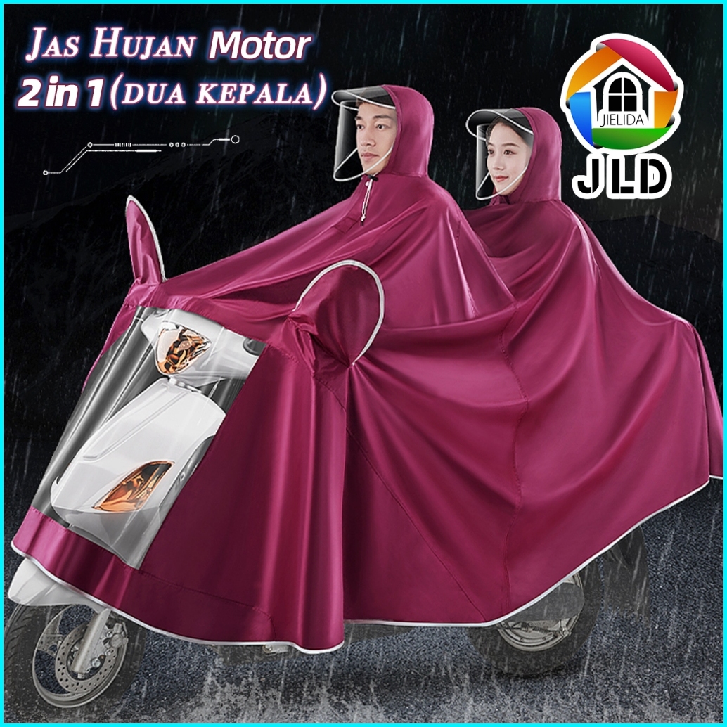 Jielida Jas Hujan Motor 2 Kepala Full Body Motor Double Ponco 3 Kepala Full Cover Motor Raincoat 2 In 1 Coat 3 In1 Jas H