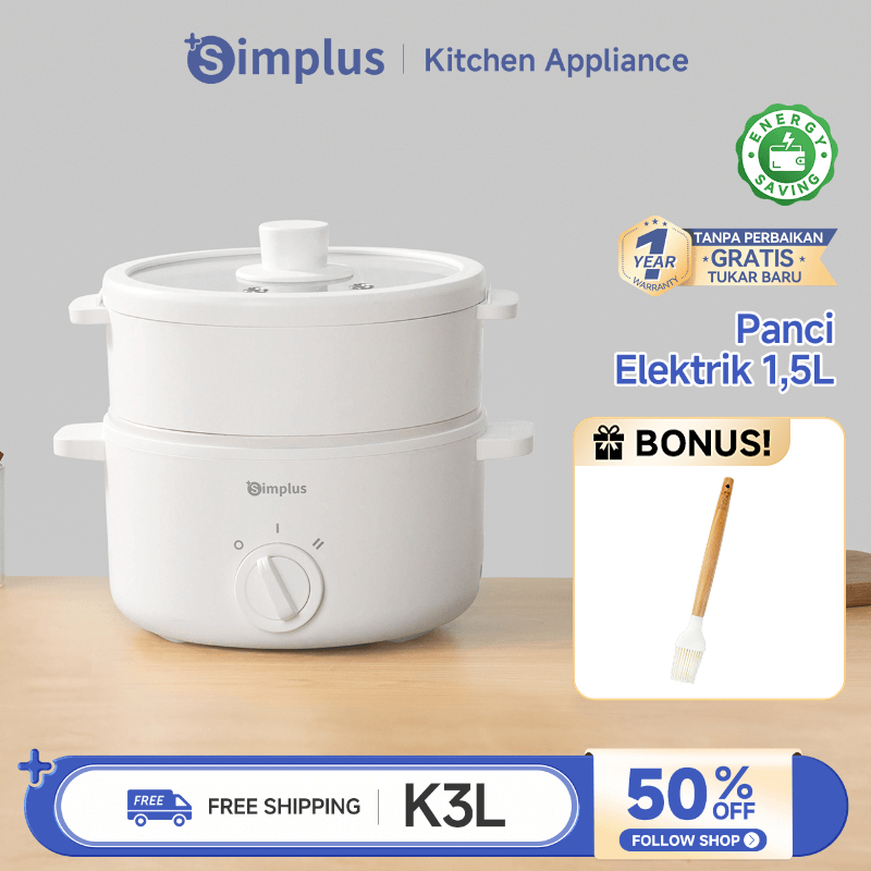 Panci Listrik Multifungsi Simplus 1.5L/3L Rice Cooker Kukusan Steamer Praktis