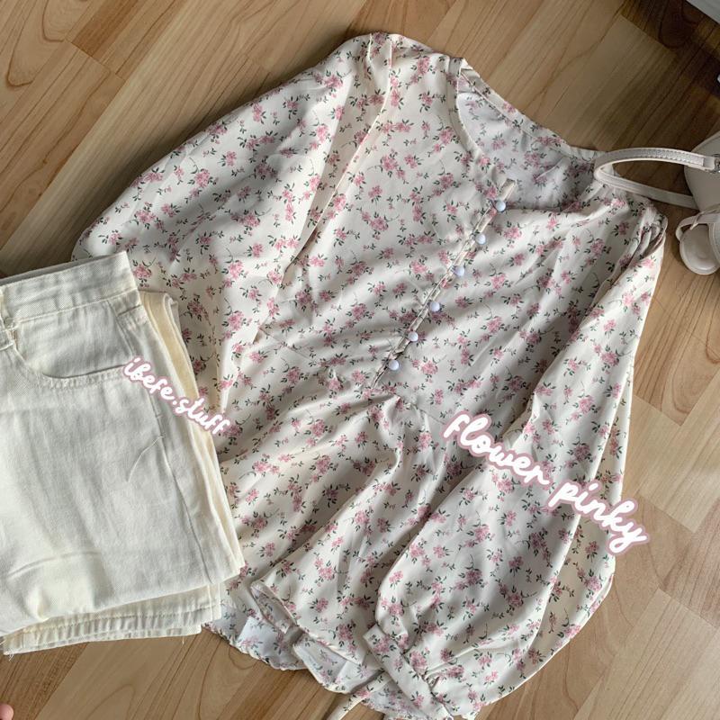 Blouse Wanita Cellia Margaritha Twist Korean Vintage Floral Blouse