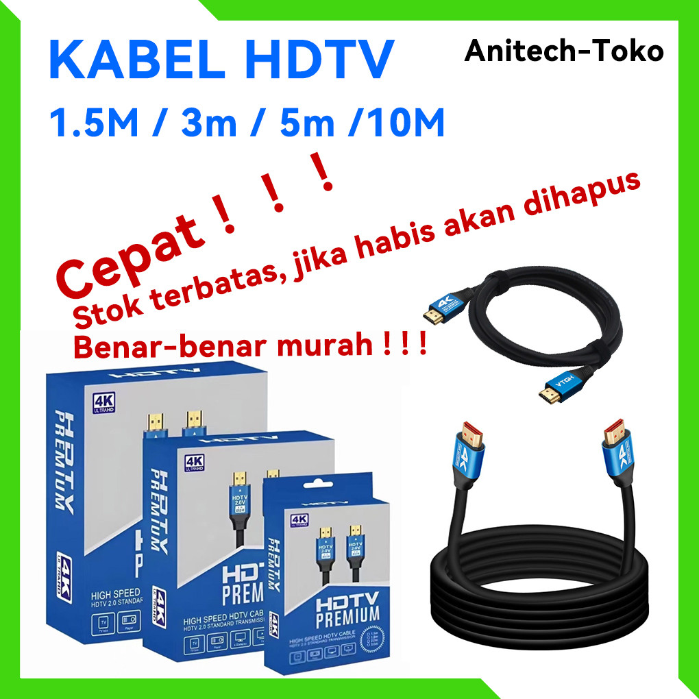 KABEL HDTV 1.5M / 3m / 5m /10M VERSI 2.0 FULL 4K -CABEL HDMI 4k /HDTV PREMIUM HIGH SPEED HDTV CABEL