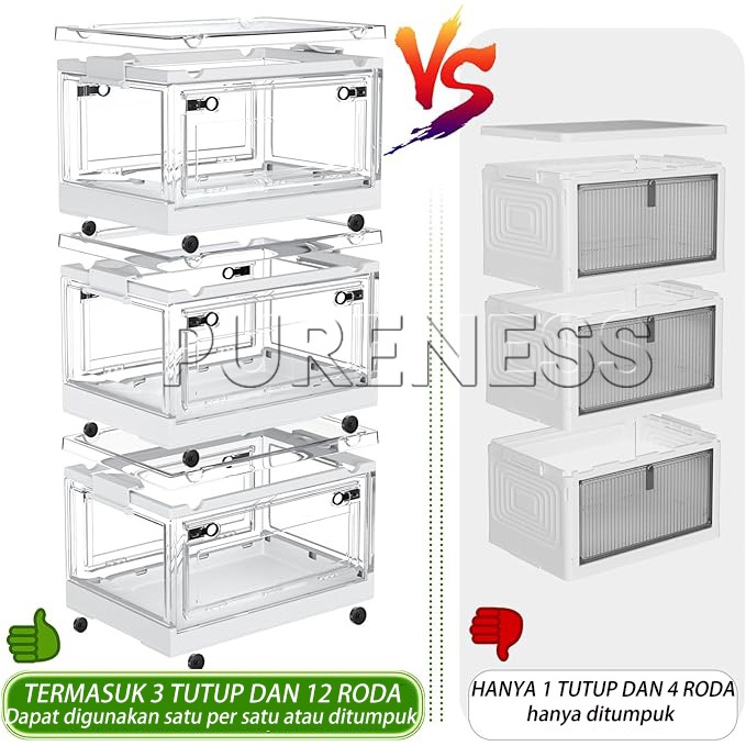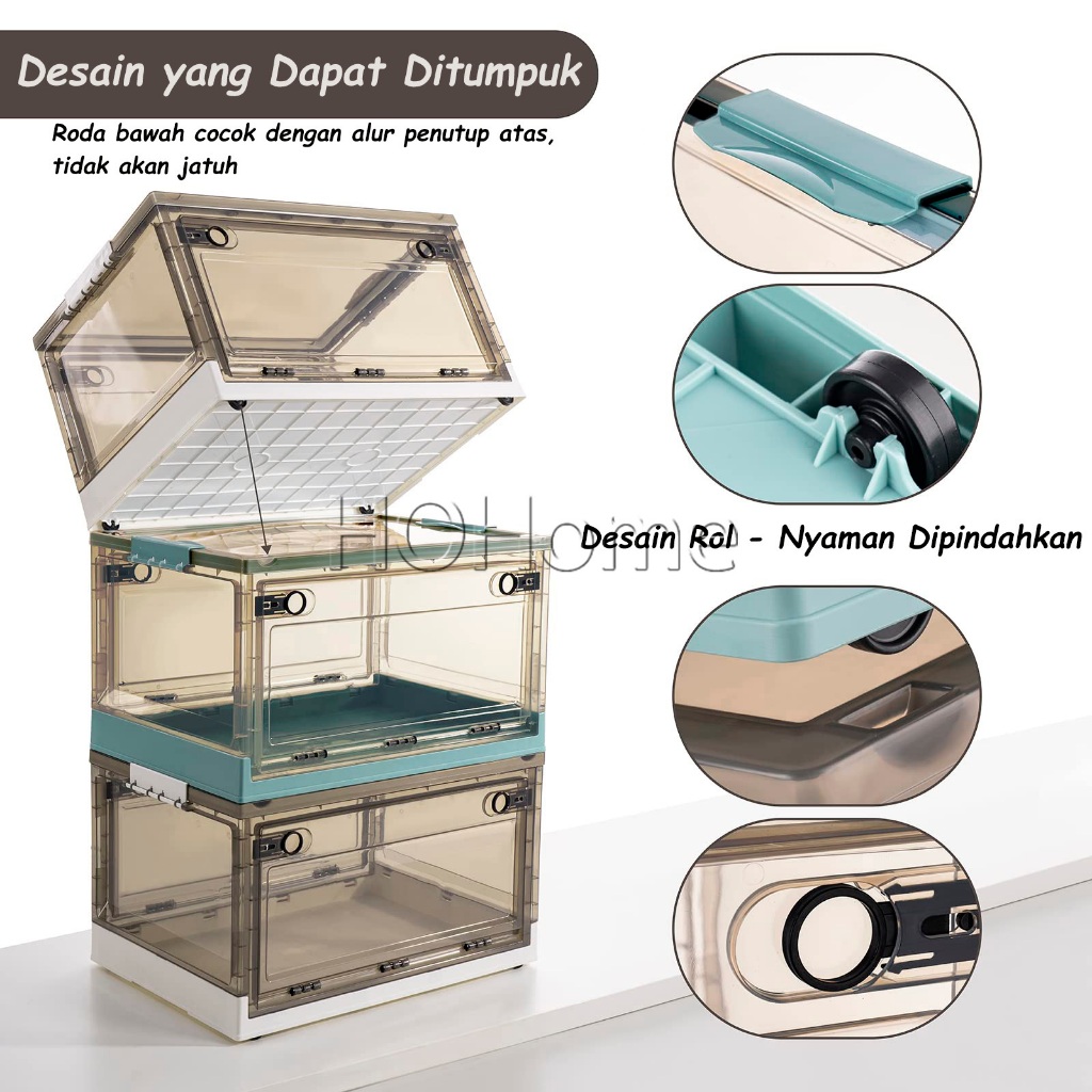 Kotak Penyimpanan Transparan Lipat Organizer Plastik Kapasitas Besar Tempat Barang Rumah Tangga