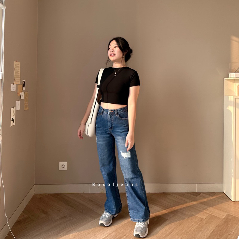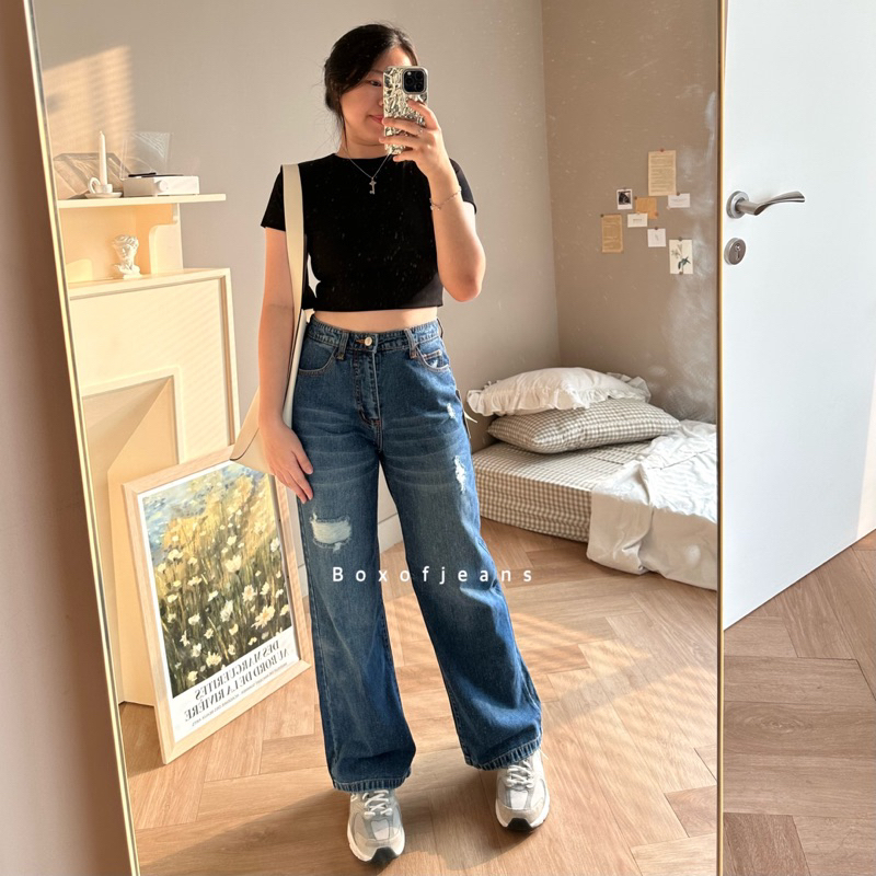 Boxofjeans - Milly Ripped Hw Loose Jeans - Dark Blue
