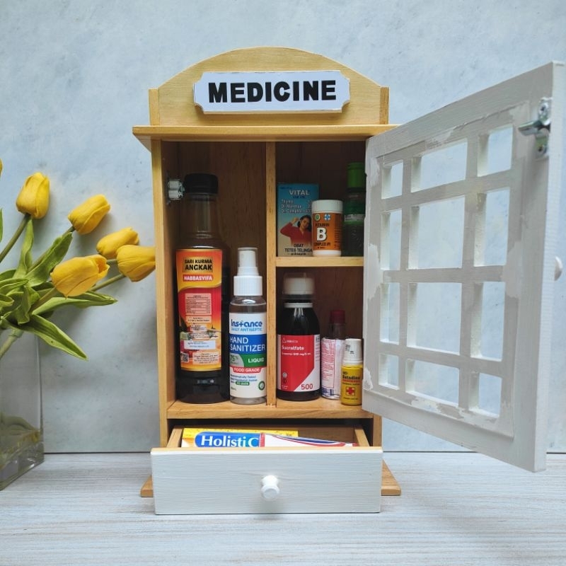 Kotak Rak Obat Prima Shabby Craft London Medicine P3K Kayu Natural Solid Standar Dan Big Size