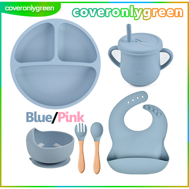 alat makan bayi alat makan silikon bebas drop proof tahan lama tempat makan bayi sendok garpu anak alat makan anak tahan