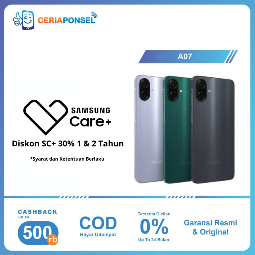 Samsung Galaxy A07 4G 6/128GB, 8/256GB Helio G99 50MP 5000mAh Garansi Resmi SEIN 1 Tahun