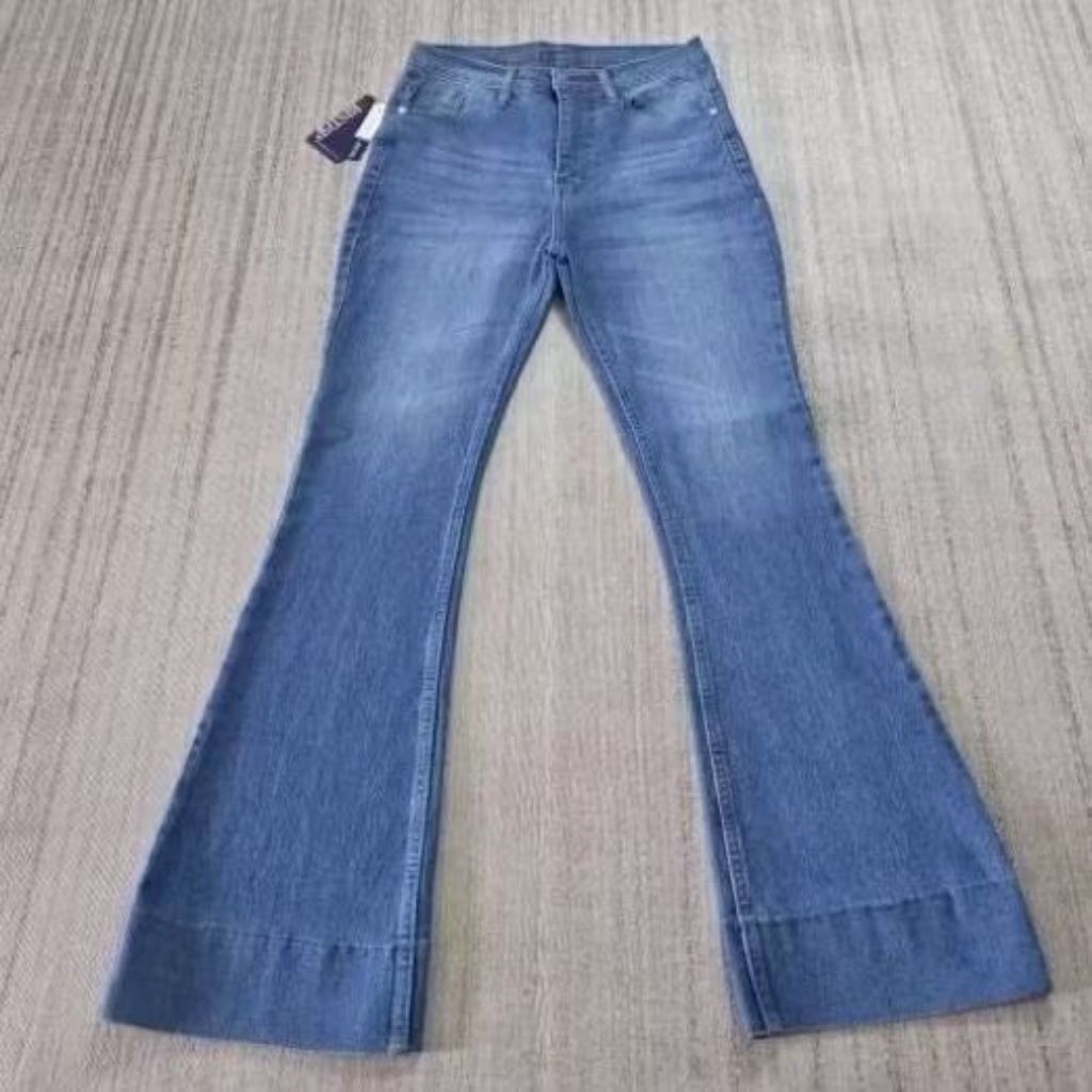 Jennie-HighWaist Cutbray Jeans Celana Flare Panjang Stretch Wanita Retro Vintage Lipat Bawah