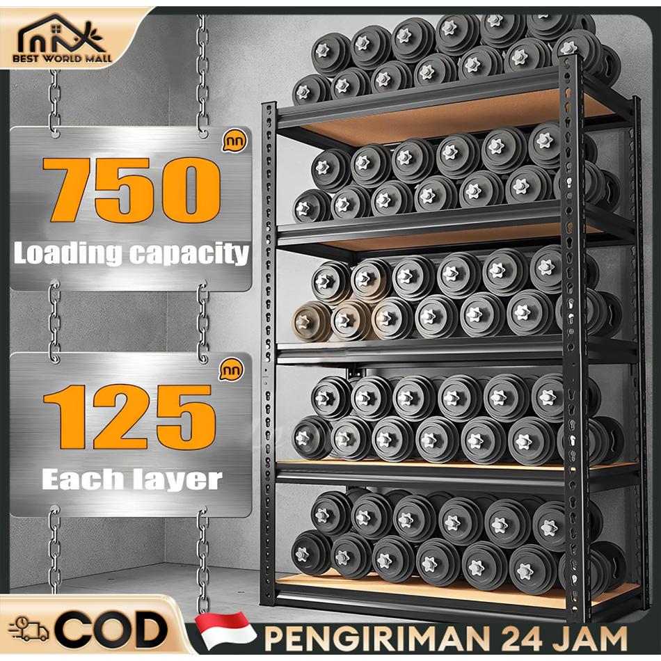 Rak Besi Siku 5 Susun Rak Gudang Kapasitas Beban Tinggi Rak Penyimpanan Hemat Ruang Mudah Dipasang