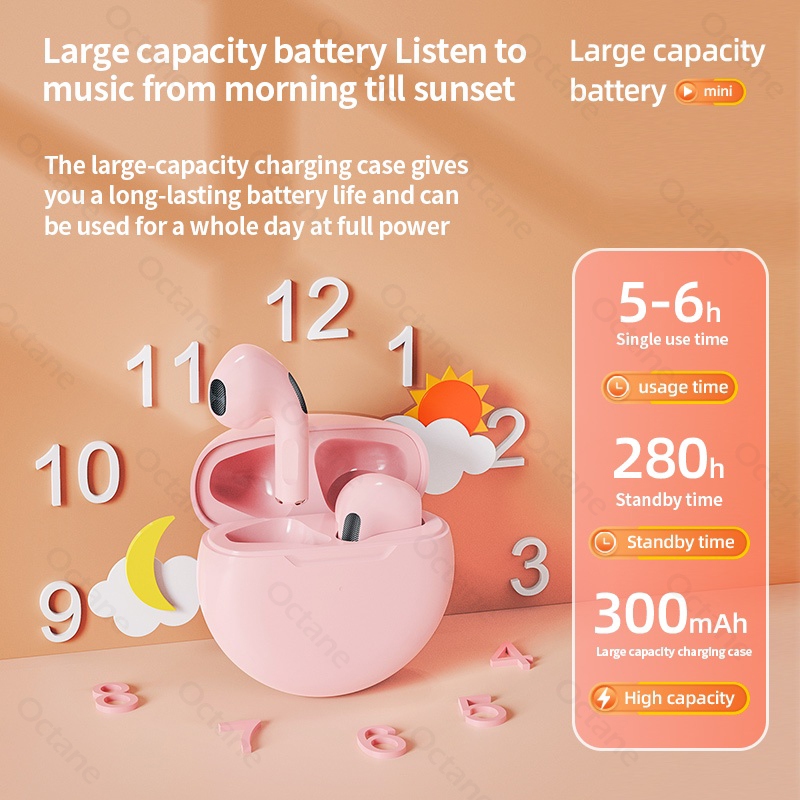 Pro 6 TWS Bluetooth Headset HiFi Stereo with Microphone Bluetooth Earphone Bass Headset Wireless Hetset Bluetooth Handse
