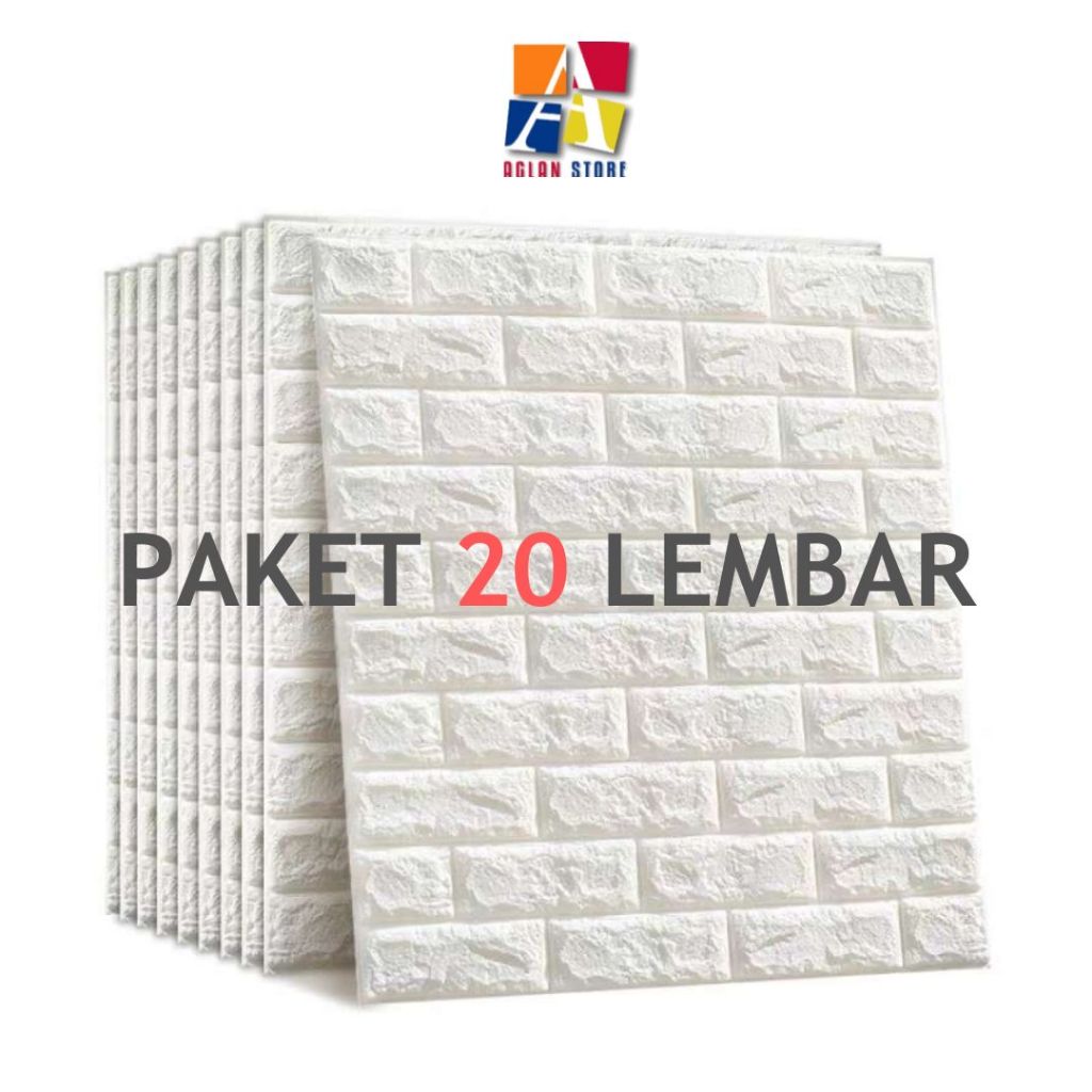 Paket 20 Lembar - Wallpaper dinding 3D foam motif batu bata timbul stiker dinding anti air 70x38