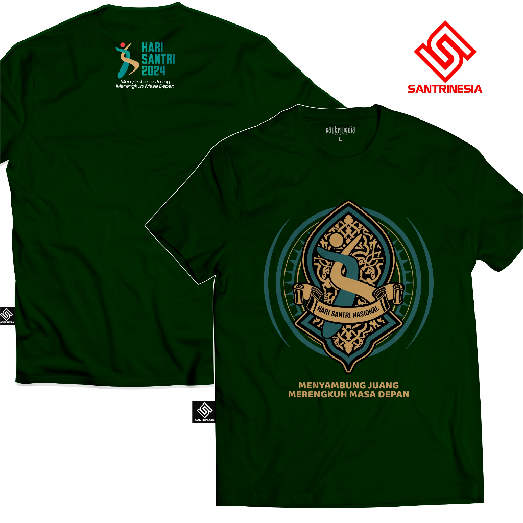 Santrinesia Kaos Hari Santri Nasional 2024 Bahan Katun Combed 24s HSN Logo Resmi v4