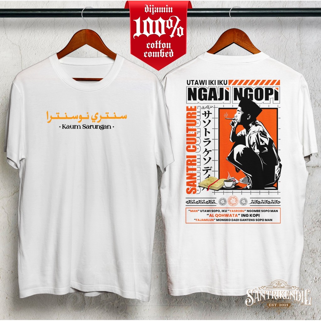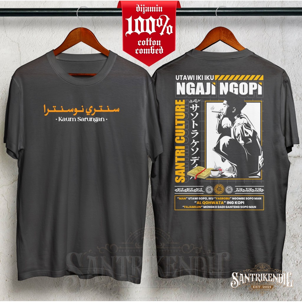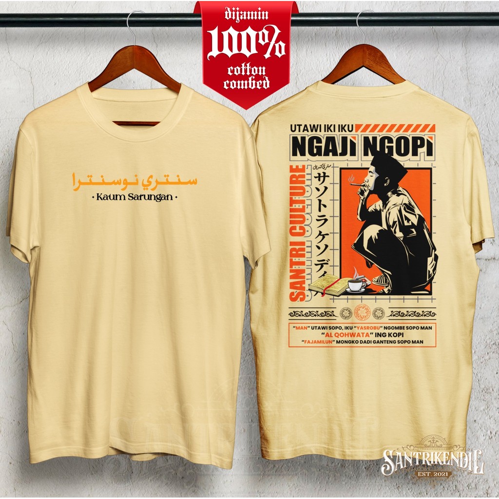 KAOS DISTRO SANTRI KUALITAS PREMIUM 100 COTTON / KAOS STREETWEAR PENDEK / KAOS SANTRI SALAFY PRIA KEREN GAUL MURAH ANAK DAN DEWASA / KAOS DAKWAH ISLAMI ngaji ngopi kang santri