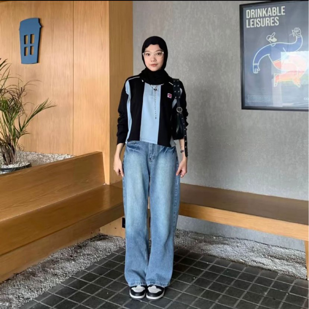 Celana Baggy Jeans Hw Loose Whisker Retro - Unisex Celana Jeans Whisker Retro Highwaist