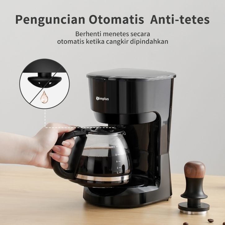 Mesin Kopi Simplus Coffee Maker Drip Rumahan Kapasitas Besar Kaca Borosilikat Tinggi